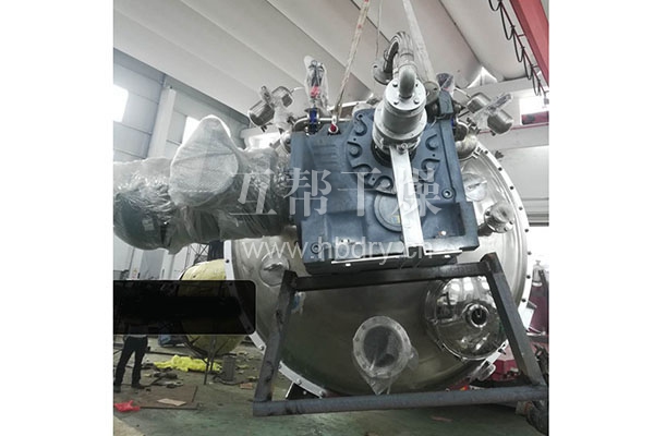 1.單錐真空混合干燥機(jī)中的物料在容器內(nèi)受熱是緊貼容器內(nèi)壁,由螺旋槳葉自下而上旋轉(zhuǎn)至容器上部,然后沿主軸呈渦流向下。物料在整個(gè)干燥過程中始終在分散運(yùn)動(dòng)。物料的運(yùn)動(dòng)狀態(tài)保證了物料的均衡受熱。