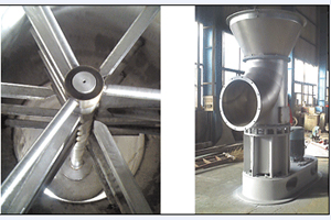 底部強(qiáng)化器設(shè)計(jì)獨(dú)特,攪拌齒為菱形,其流線性能使風(fēng)阻達(dá)到低,設(shè)置在圓錐形料斗內(nèi),分動刀和定刀,粉碎效果顯著,使下落的結(jié)塊物料迅速粉碎為適合氣流干燥的粉粒料,攪拌的另一個主要作用是分散物料,加大了與料斗下面進(jìn)來的高速熱風(fēng)的接觸面積,于是料斗區(qū)形成了一個強(qiáng)烈傳熱傳質(zhì)的流化床,大部分濕分在料斗區(qū)燥。隨著干燥的進(jìn)行,變輕變細(xì)的干料受氣流作用明顯,與氣流一起上升并進(jìn)一步干燥,然后從干燥塔頂部出來進(jìn)入物料收集系統(tǒng)。